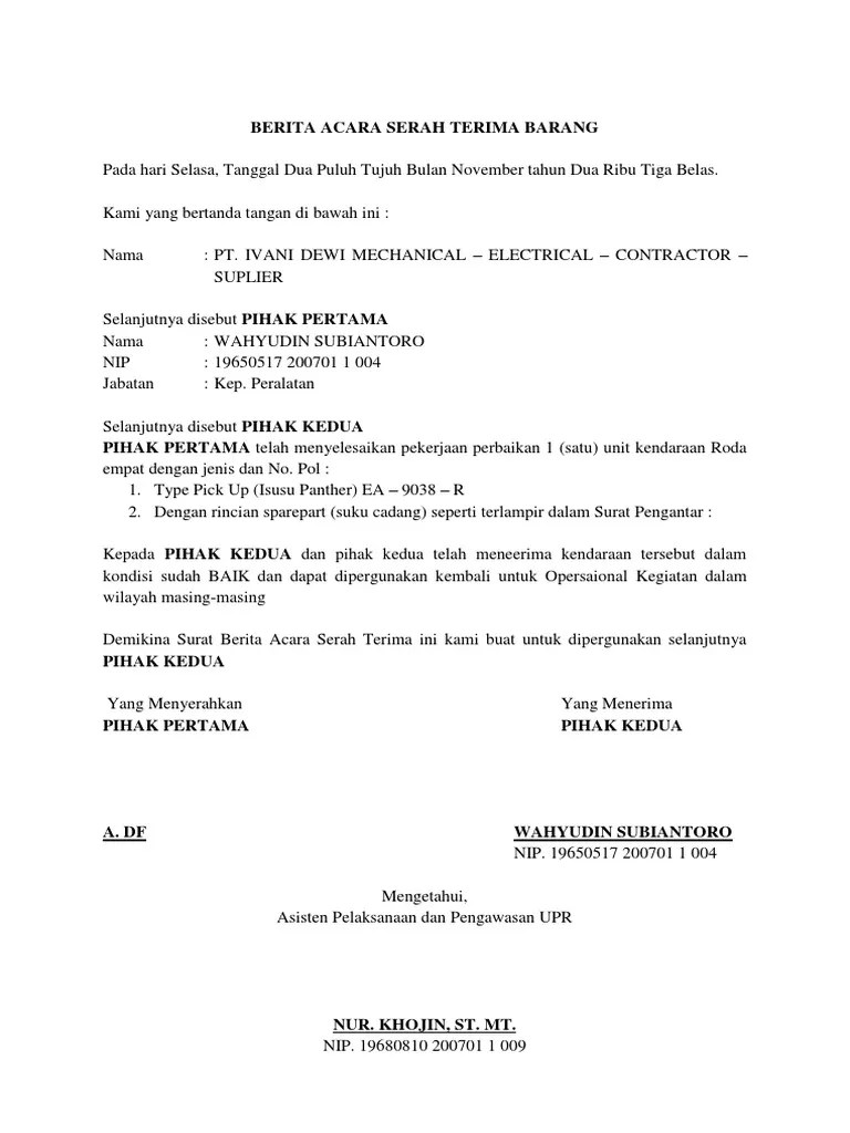 Selain itu, berita acara juga dijadikan oleh instansi atau perusahaan sebagai sebuah bukti legal mengenai peristiwa tertentu, serah terima, transaksi, jual beli, insiden tertentu dan masih banyak lagi yang lainnya. Mari kita kupas tuntas semua yang menyangkut tentang berita … Contoh surat berita acara merupakan salah satu jenis surat resmi yang banyak digunakan oleh perusahaan instansi pemerintahan sampai dengan lembaga lembaga. Ini ditujukan supaya pekerjaan kita terekam secara jelas di atas hitam putih. Seperti halnya satu dokumen yang penting dalam dunia pekerjaan, yaitu berita acara. Surat berita acara berupa dokumen yang berisi catatan, atau digunakan sebagai alat dokumentasi bahwa sudah pernah terlaksana sebuah kegiatan penting yang melibatkan banyak orang tentunya. Oleh karena itu pada kesempatan kali ini pada akhir artikel akan diberikan contoh surat berita acara yang sebelumnya akan dijelaskan terlebih dahulu bagaimana cara membuanya agar anda lebih mengerti dan bisa membuatnya sendiri. Seperti halnya satu dokumen yang penting dalam dunia pekerjaan, yaitu berita acara.
